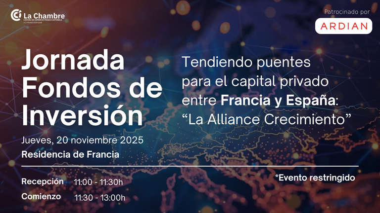 Residencia de Francia • MadridLa Cámara de Comercio Franco-Española os invita a la Jornada Fondos de Inversión el próximo jueves 20 de noviembre en la Residencia de Francia.