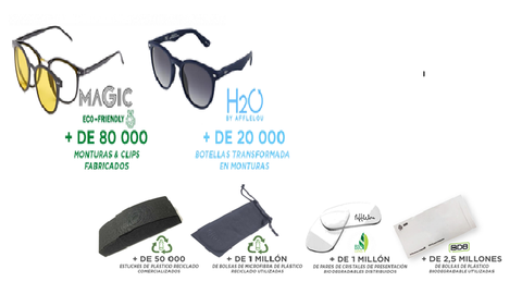 - En los últimos 12 meses, AFFLELOU ha lanzado dos colecciones de gafas elaboradas a partir de materiales sostenibles: MAGIC Eco-Friendly y H2O