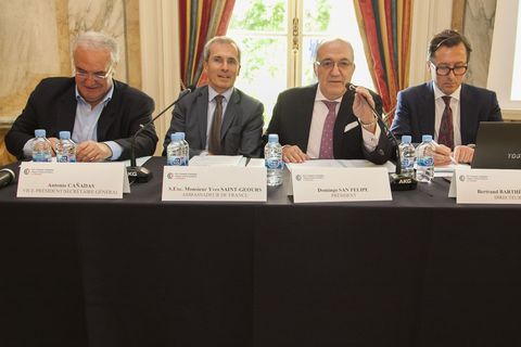 El Sr. Saint-Geours, comienza su discurso alabando el poder de convocatoria de La Chambre, una Institución de largo recorrido y solidez siempre presente en las relaciones franco-españolas "Los Embajadores pasan, La Chambre reste".