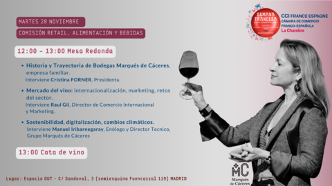 Un evento en el marco de nuestra Semana Francesa en el que Cristina Forner nos contará la historia y trayectoria de las bodegas Marqués de Cáceres 🍷