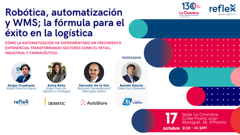 Veremos como cada sector adapta esta funcionalidad a sus necesidades. Reflex, Dematic y AutoStore compartirán su experiencia en proyectos de éxito, abordando desde el punto de partida las necesidades específicas de cada sector y el proceso de automatización.