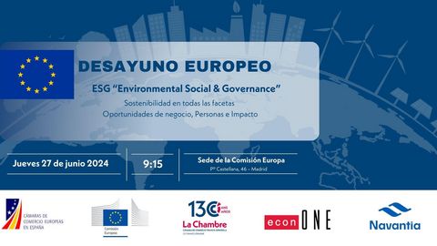 Las Cámaras de Comercio Europeas organizan el Desayuno Europeo, un evento presencial que abordará el tema “ESG (Environmental Social & Governance) Sostenibilidad en todas las facetas, Oportunidades de Negocios, Personas e Impacto”.
