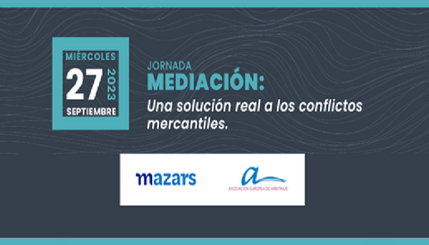 La Asociación Europea de Arbitraje y Mazars organizan, el miércoles 27 de septiembre, una sesión práctica bajo el título: “Mediación, una solución real a los conflictos mercantiles” en la que tendrás la oportunidad de participar en una mediación simulada dirigida por la experta en mediación Katia Fach y conocerlas novedades legislativas en materia de solución alternativa de conflictos.