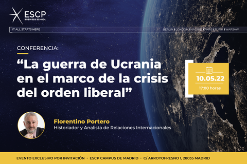 ESCP Business School tiene el placer de invitarle a participar en la Conferencia “La guerra de Ucrania en el marco de la crisis del orden liberal”, que tendrá lugar el próximo martes 10 de mayo 2022.