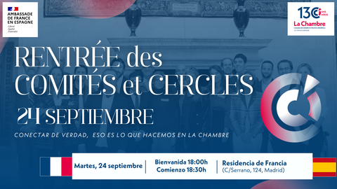 La Embajada de Francia y la Cámara de Comercio Franco-Española tienen el placer de invitaros a la "Rentrée des Comités et Cercles", uno de los eventos más apreciados de La Chambre, en la Residencia de Francia.