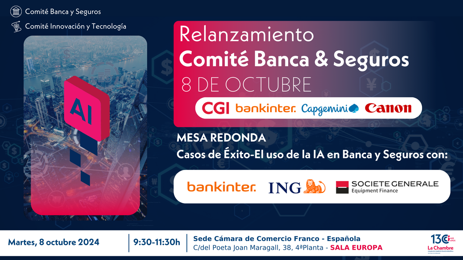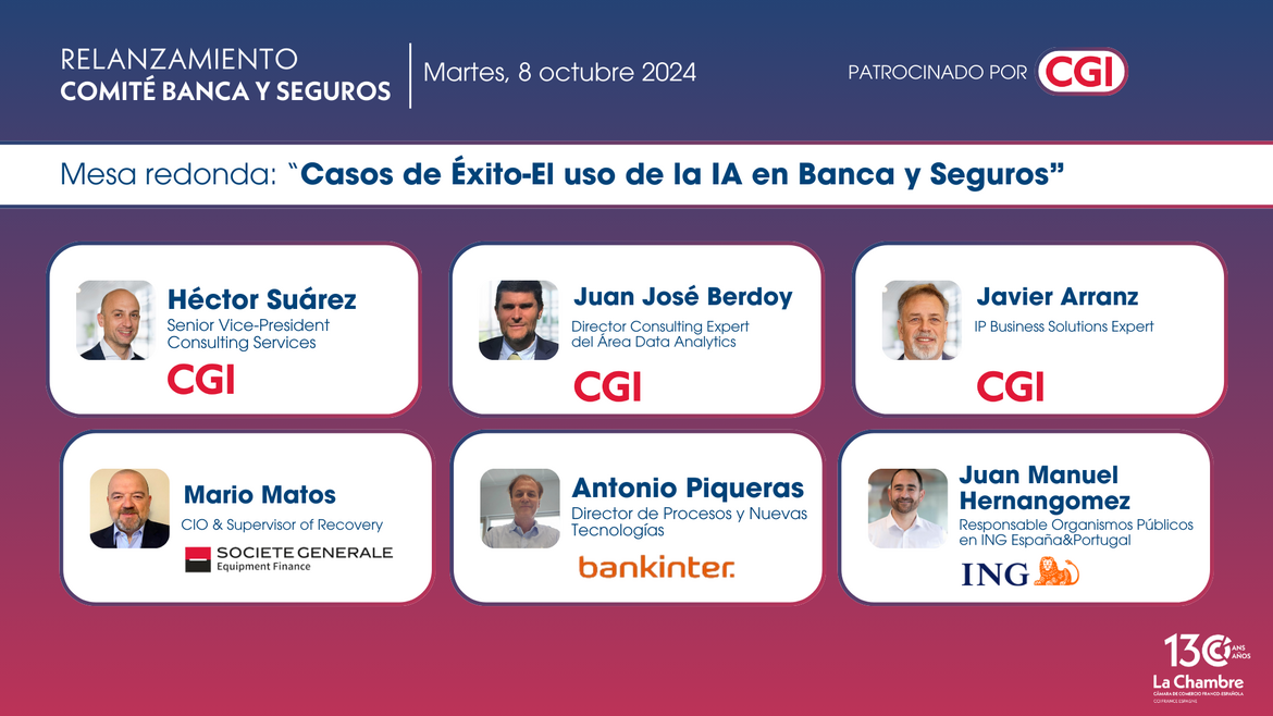 En el marco de este relanzamiento tendrá lugar el evento “Casos de Éxito - El uso de la IA en Banca y Seguros”, donde contaremos con una Mesa Redonda en la que, expertos de diversas entidades líderes, compartirán su experiencia y visión sobre la integración de la IA en sus procesos.