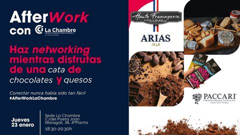 El próximo jueves, 23 de enero tendrá lugar el Afterwork con La Chambre donde harás networking mientras disfrutas de una cata de chocolates y quesos por cortesía de Mantequerías Arias y Paccari.