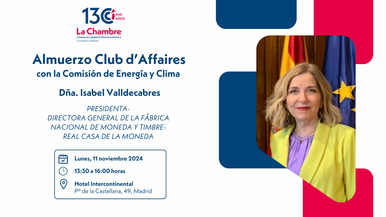 Te invitamos al próximo Almuerzo Club d'Affaires en el que Dña. Isabel Valldecabres, Presidenta-Directora General Fábrica Nacional de Moneda y Timbre - Real Casa de la Moneda, será la invitada del Almuerzo Club d'Affaires, el próximo lunes 11 de noviembre.