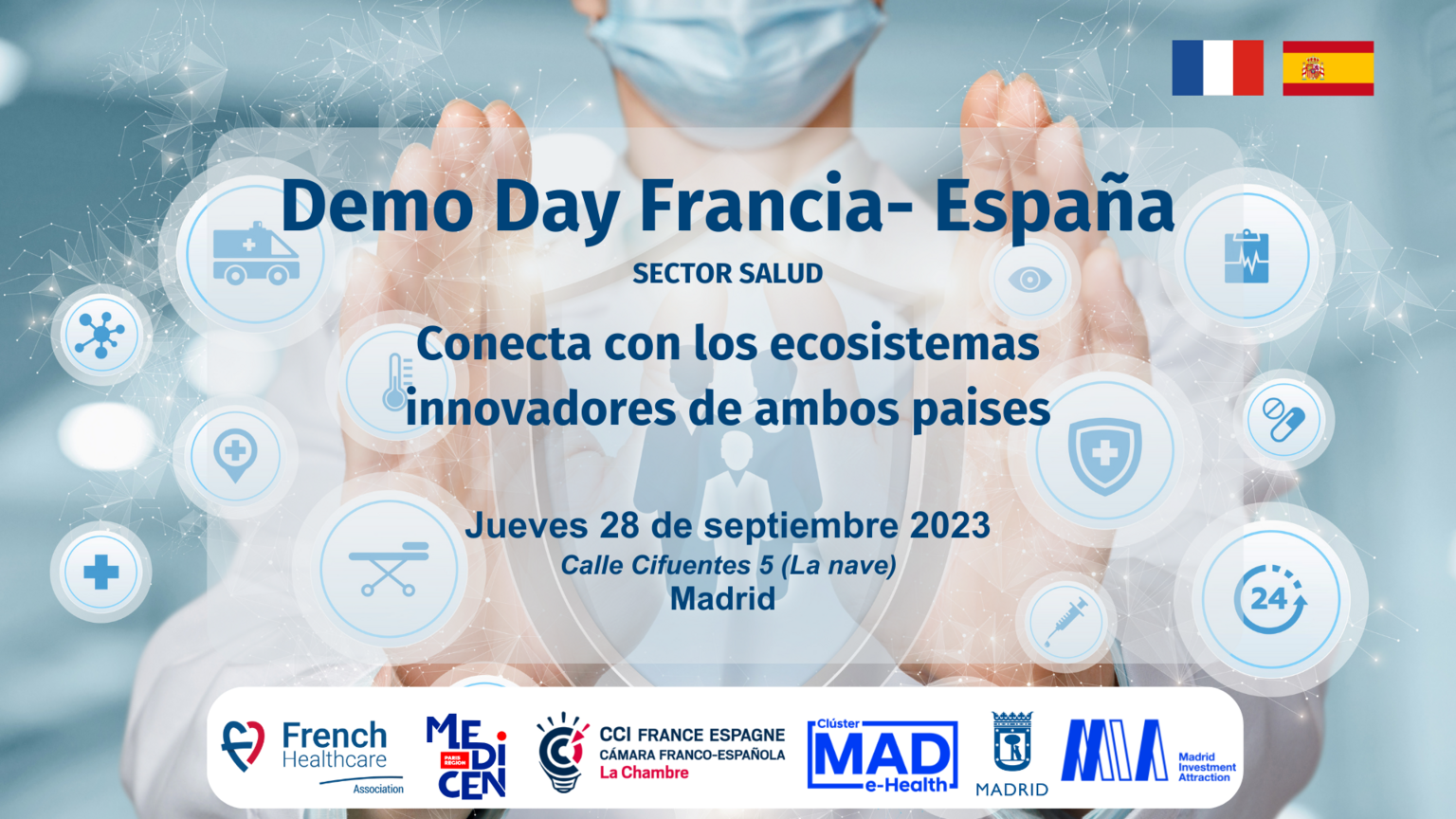 El 28 de septiembre, organizamos un Demoday Salud que tendrá lugar en la Nave (Aula 7 de la Nave - Calle Cifuentes, 5 28021 – Madrid), en colaboración con el Ayuntamiento de Madrid, Medicen, French Healthcare Association y el clúster Mad e-Health.