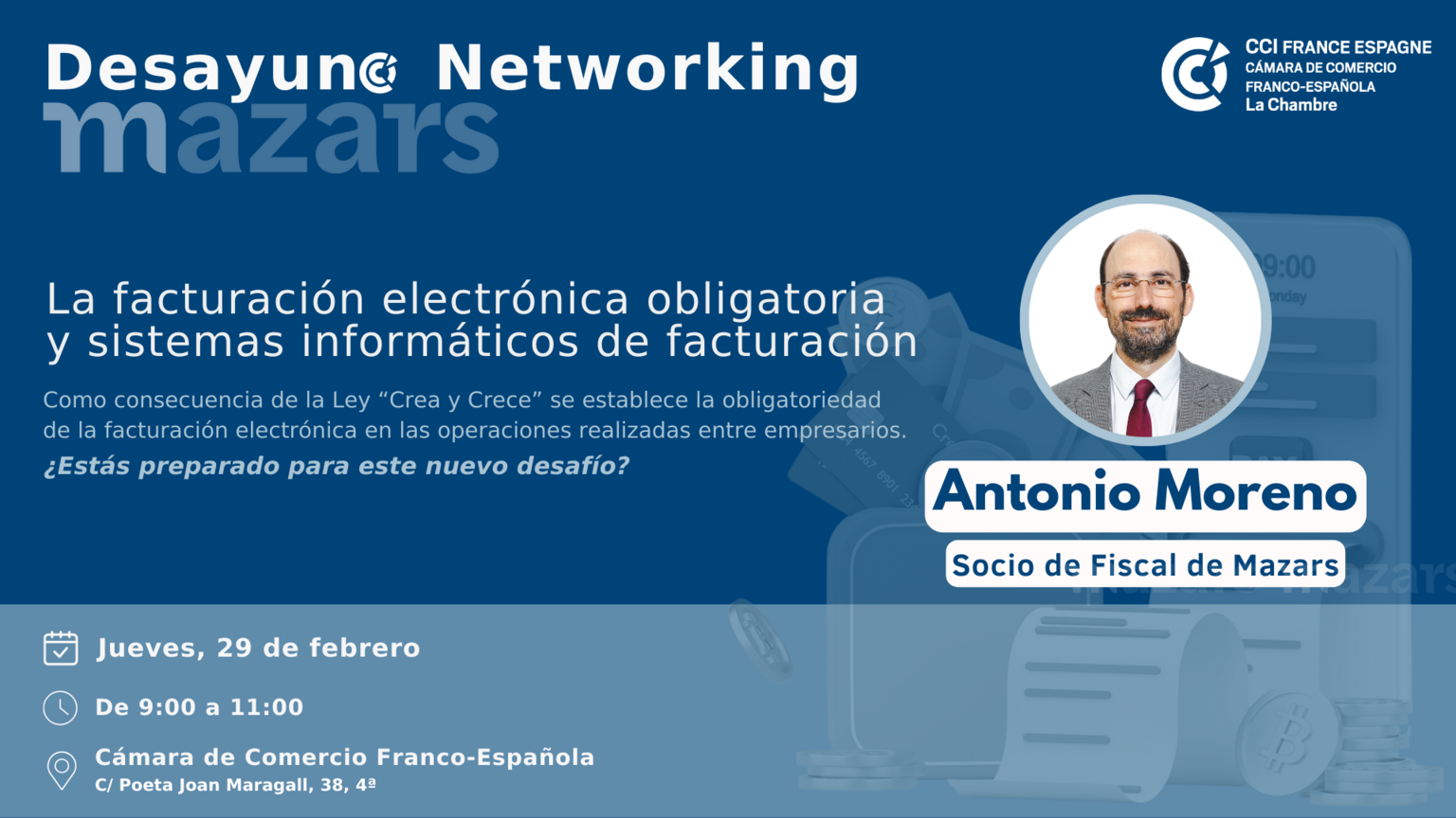 ¡Descúbrelo con nosotros el jueves 29 de febrero de 9:00 a 11:00 en la Cámara! Contaremos con la experiencia de Antonio Moreno, Socio de Fiscal de Mazars, quien te guiará a través de estos cambios ?