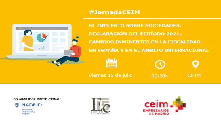 CEIM y Equipo Económico, con la colaboración del Ayuntamiento de Madrid, han organizado esta jornada con el objetivo de hacer un repaso de los principales aspectos a tener en cuenta en la declaración del Impuesto sobre Sociedades correspondiente al ejercicio 2021, así como de la doctrina de los Tribunales Económicos Administrativos sobre este impuesto más reciente. También se darán a conocer las novedades tributarias más relevantes en los ámbitos nacional e internacional.