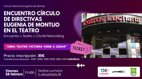 El próximo viernes, 28 de febrero tendrá lugar el evento para el Círculo de Directivas Eugenia de Montijo en el teatro para disfrutar de la obra "Victoria viene a cenar".