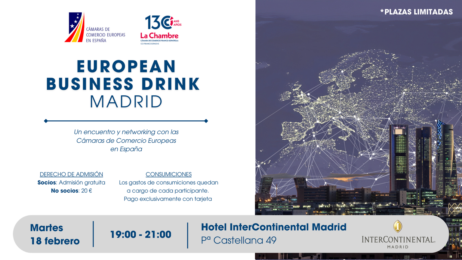Un encuentro y networking con las Cámaras de Comercio Europeas en España en el Hotel InterContinental de Madrid