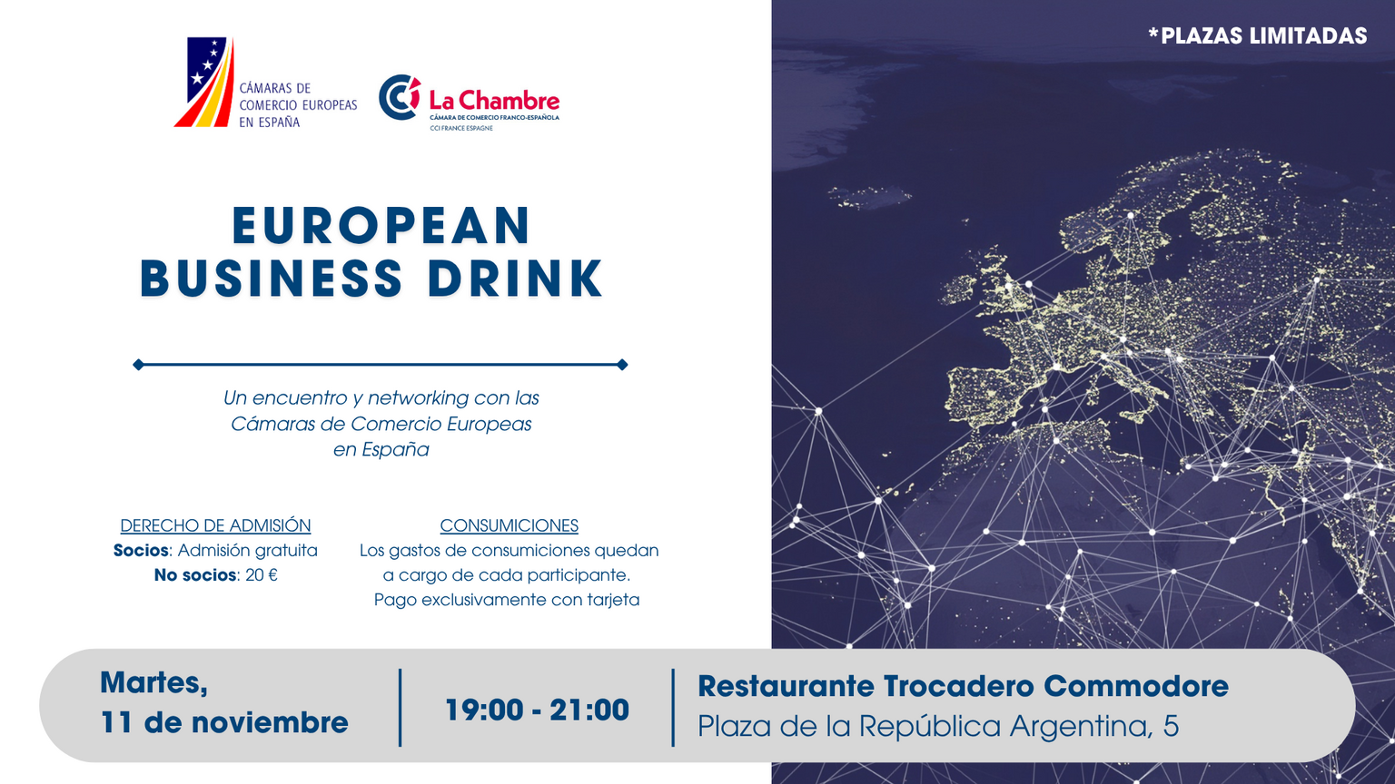 Desde la Cámara de Comercio Franco-Española, te invitamos al próximo European Business Drink.