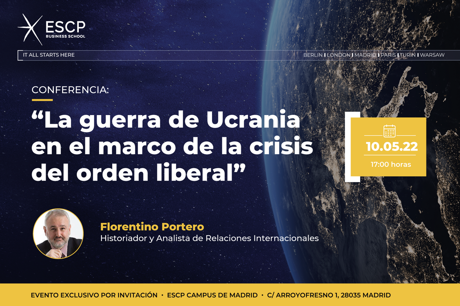 ESCP Business School tiene el placer de invitarle a participar en la Conferencia “La guerra de Ucrania en el marco de la crisis del orden liberal”, que tendrá lugar el próximo martes 10 de mayo 2022.