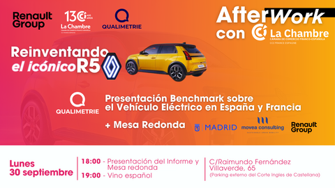 Te invitamos el próximo lunes 30 de septiembre al Lanzamiento del nuevo modelo del icónico Renault 5 y la Presentación del informe sobre el Vehículo Eléctrico en España y Francia de Qualimetrie.