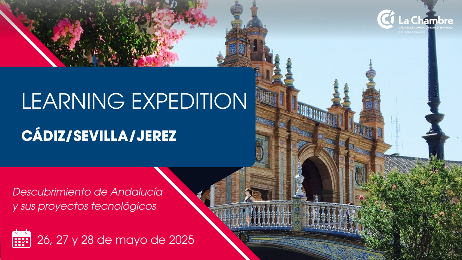 Desde la delegación de Valencia de La Chambre, te invitamos a participar en nuestra próxima Learning Expedition que tendrá lugar del 26 al 28 de mayo de 2025 en Sevilla, Jerez y Cádiz con el objetivo de dar a conocer a empresas relevantes los nuevos proyectos tecnológicos que están transformando la región.