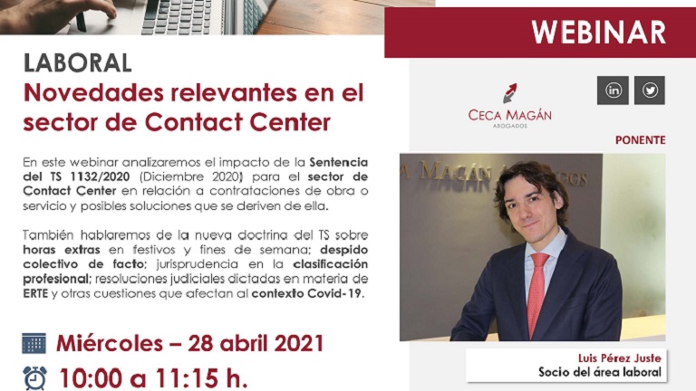 En este webinar analizaremos el impacto de la Sentencia del TS 1132/2020 (Diciembre 2020) para el sector de Contact Center en relación a contrataciones de obra o servicio y posibles soluciones que se deriven de ella.