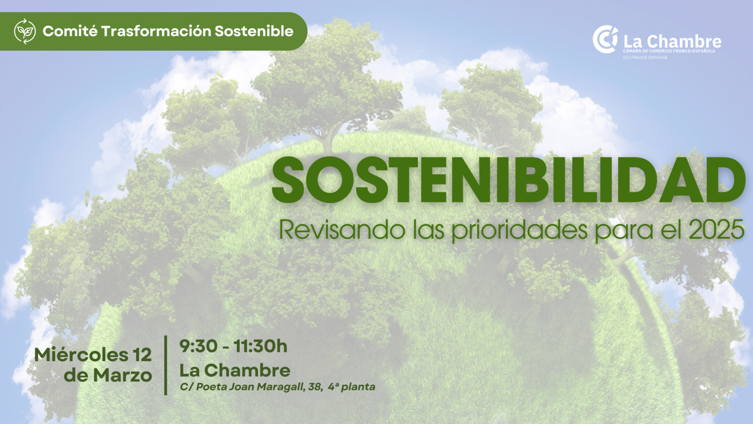 El próximo miércoles 12 de marzo tendrá lugar el evento: "Sostenibilidad: Revisando las prioridades para el 2025". Será en la Sede de la Cámara de 9:30 a 11:30h.