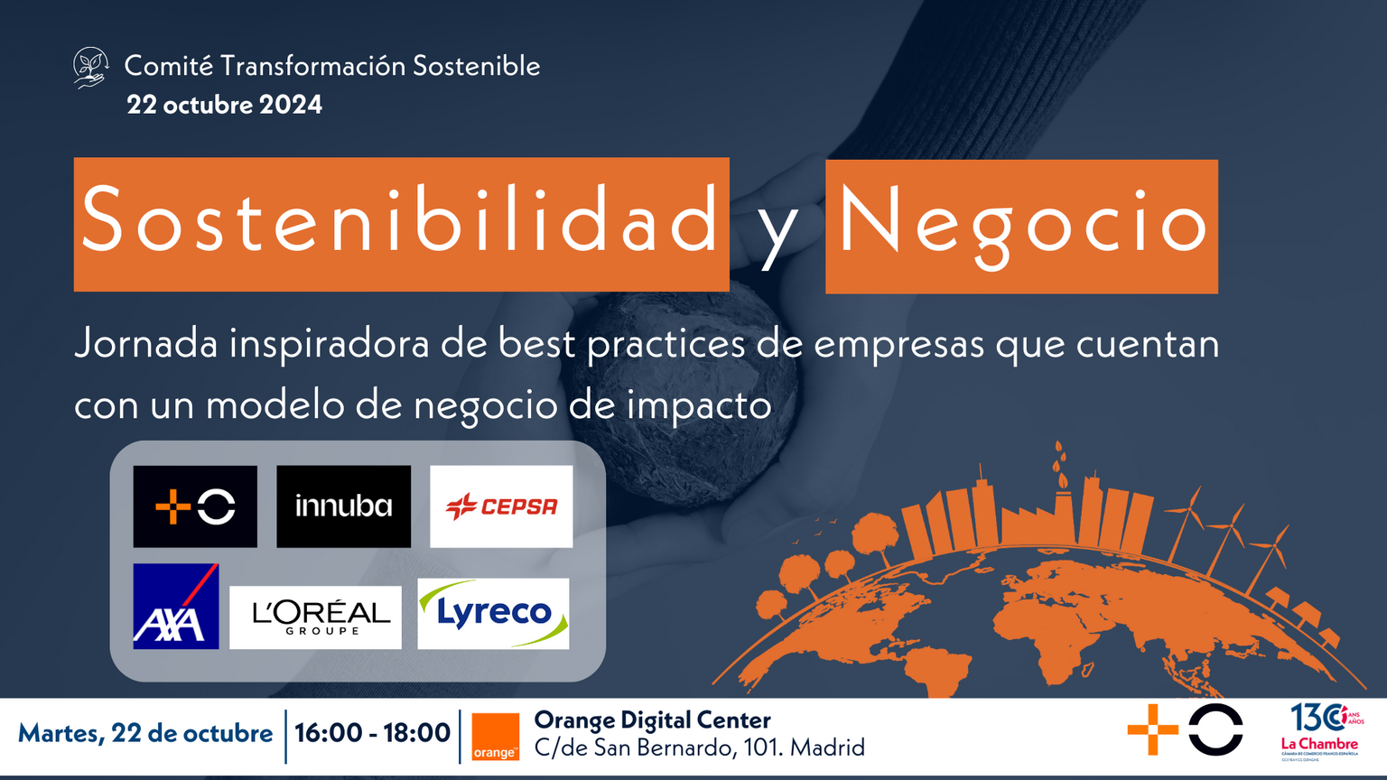 La Cámara de Comercio Franco-Española invita a un evento muy especial que explora la dinámica intersección entre sostenibilidad, negocios e innovación. Según estudios recientes, las empresas que incorporan prácticas sostenibles han visto un aumento de hasta el 20% en el valor de mercado y una mayor resiliencia frente a la volatilidad del mercado. En este evento, escuchará relatos de primera mano de empresas líderes como MasOrange, Cepsa, Lyreco, Axa o L'Oreal, entre otras, que han integrado con éxito la sostenibilidad en sus operaciones principales, transformando no solo su posición en el mercado sino también impactando positivamente al planeta y la sociedad. Este evento ofrece una plataforma única para intercambiar ideas, inspirar y hacer networking con representantes de diferentes industrias.