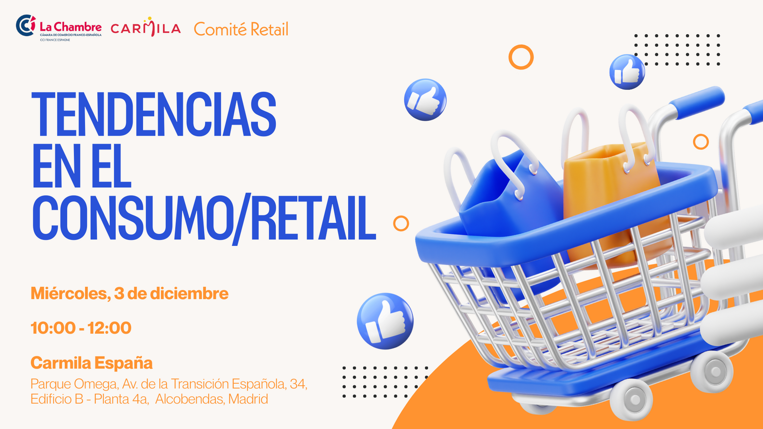 El próximo miércoles, 3 de diciembre, de 10:00 - 12:00, en las oficinas de Carmila, no te pierdas "Tendencias en el consumo/retail", un evento de nuestro Comité de Retail.