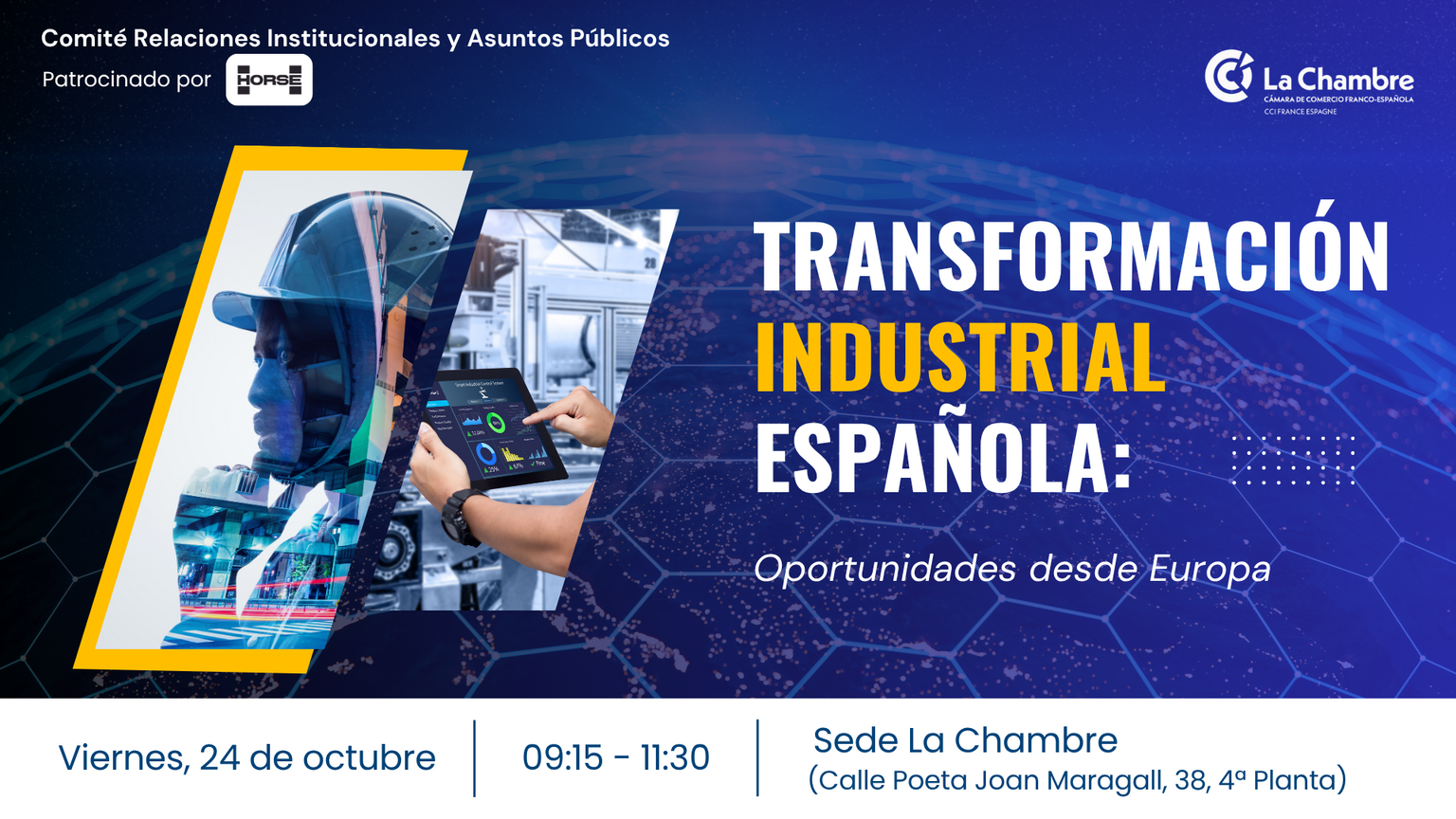 Nuestro Comité de RRII y AAPP, patrocinado por Horse, te invita al evento "Transformación industrial española: Oportunidades desde Europa"
