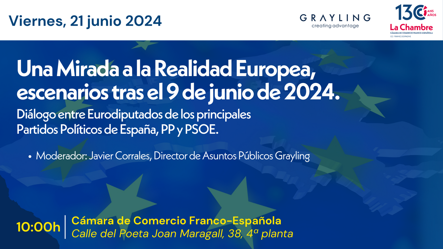 Los resultados de las elecciones europeas traen consigo una serie de cambios que pueden tener importantes repercusiones. Para abordar estos temas, el próximo 21 de junio a las 10:00 horas, en colaboración con el equipo de asuntos públicos de Grayling, organizaremos un encuentro exclusivo con varios eurodiputados.