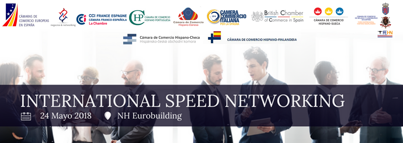 Es un placer invitarle a participar en el V INTERNATIONAL SPEED NETWORKING, organizado conjuntamente por la Cámara Franco-Española de Comercio e Industria, la Cámara de Comercio Hispano Sueca, la Cámara de Comercio de Bélgica y Luxemburgo y Foro Empresarial Hispano-Neerlandés, la Cámara de Comercio Italiana para España, la Cámara de Comercio Hispano-Danesa, la Cámara de Comercio Hispano Portuguesa, la Cámara de Comercio Británica en España, la Cámara de Comercio Hispano-Checa, la Cámara de Comercio Hispano-Finlandesa y Negocios & Networking.