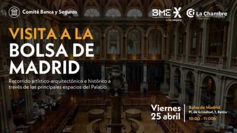 El próximo viernes 25 de abril tendremos una visita del Comité de Banca y Seguros a la Bolsa de Madrid, será un recorrido artístico-arquitectónico e histórico a través de los principales espacios del Palacio.
