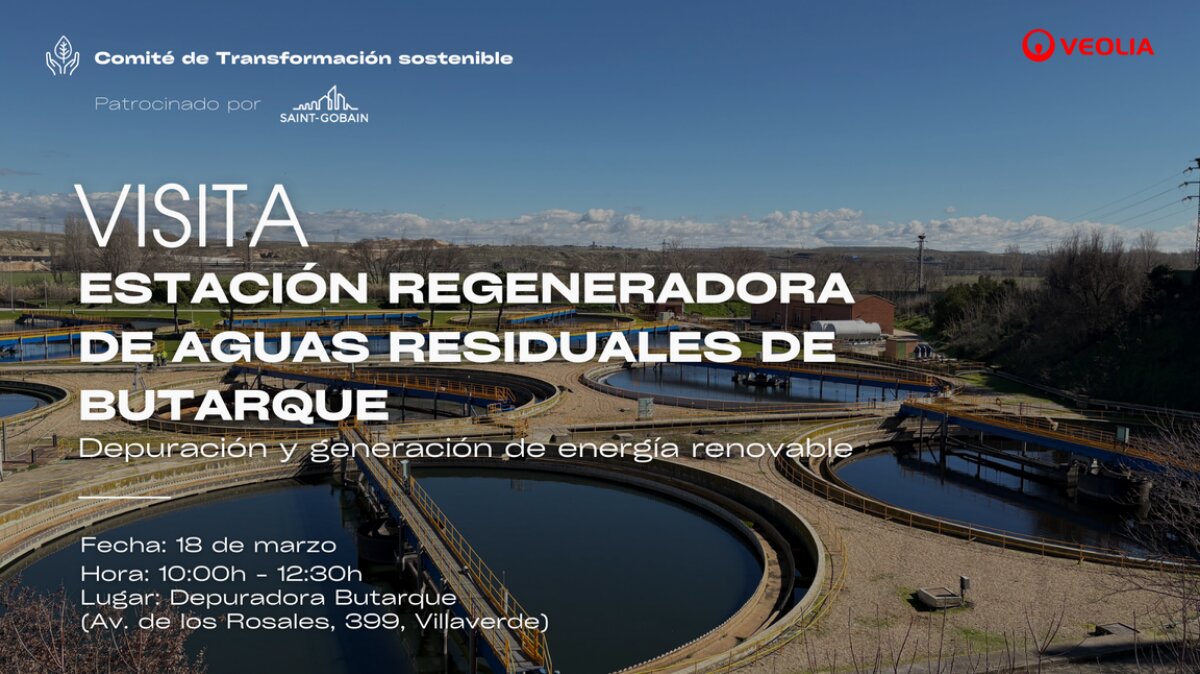 Desde el Comité de Transformación Sostenible queremos invitarte a una visita guiada a la Estación Regeneradora de Aguas Residuales de Butarque el miércoles 18 de marzo de 10:00h a 12:30h.