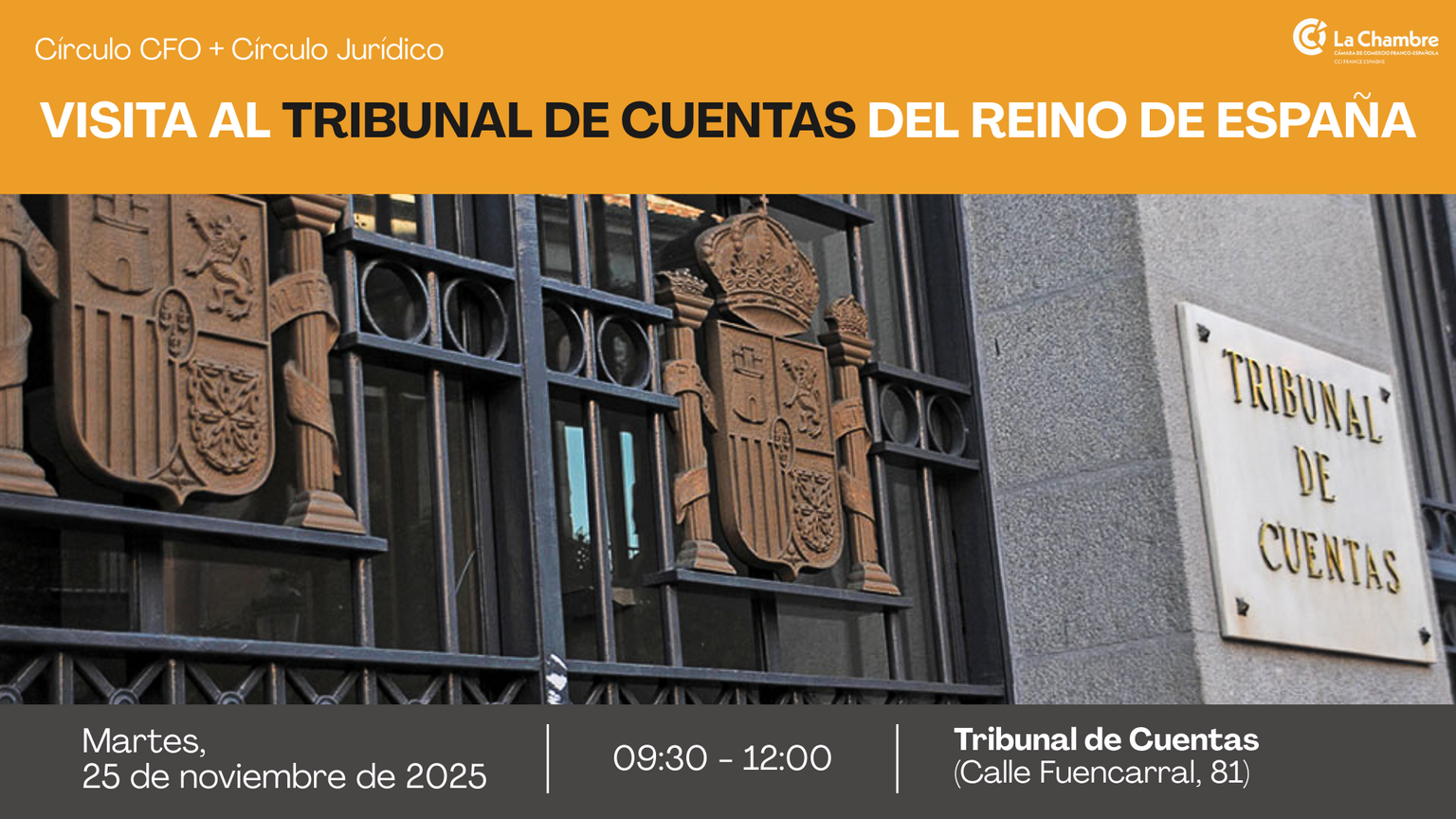 El próximo martes, 25 de noviembre, no te pierdas la Visita al Tribunal de Cuentas del Reino de España, el supremo órgano fiscalizador de las cuentas y de la gestión económica del sector público español. Esta visita, organizada por nuestros Círculos CFO y Jurídico, tendrá lugar en el Tribunal de Cuentas, de 09:30 a 12:00h.