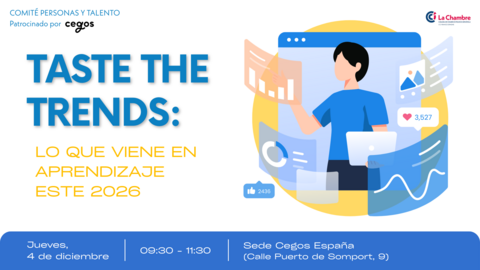 Nuestro Comité de Personas y Talento, patrocinado por Cegos, te invita a asistir a su próximo evento "Taste the trends: Lo que viene en aprendizaje este 2026". Tendrá lugar en la sede de Cegos de 09:30 a 11:30.