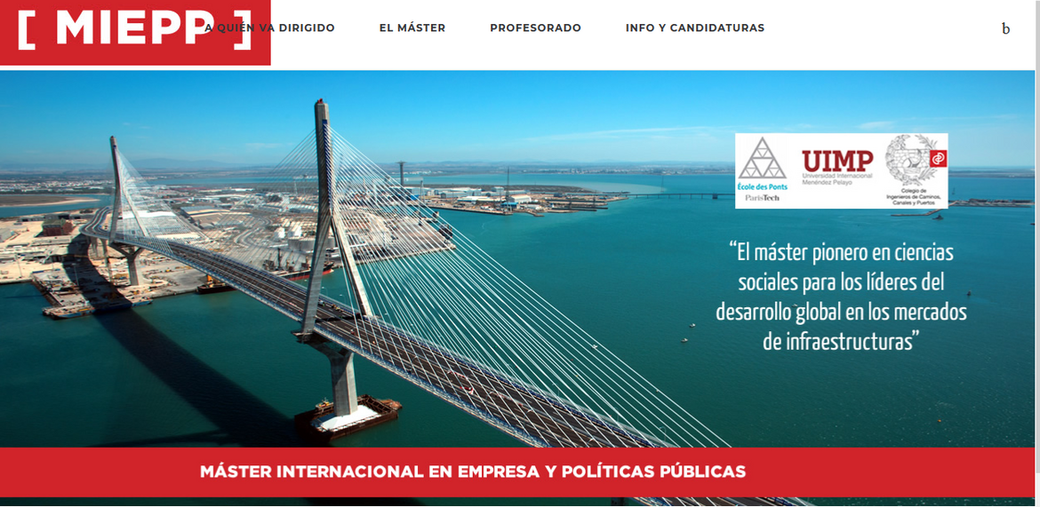El Máster Internacional en Empresa y Políticas Públicas [MIEPP] es un título conjunto de la Universidad Internacional Menéndez Pelayo y la École des Ponts ParisTech, el primero que esta grande école propone fuera de Francia en sus casi tres siglos de historia.