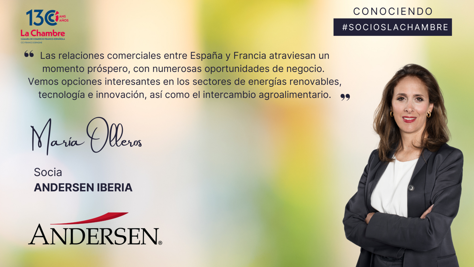 El despacho de abogados Andersen Iberia ha lanzado recientemente su French Desk, un equipo de especialistas que ofrece asesoramiento jurídico y fiscal para el desarrollo de negocio bidireccional entre compañías presentes en los mercados francés e ibérico. A propósito de su lanzamiento, entrevistamos a María Olleros, socia de Andersen Iberia y responsable de liderar este nuevo grupo de trabajo junto a los también socios del bufete Antonio Cañadas y Juan Ignacio Alonso.
