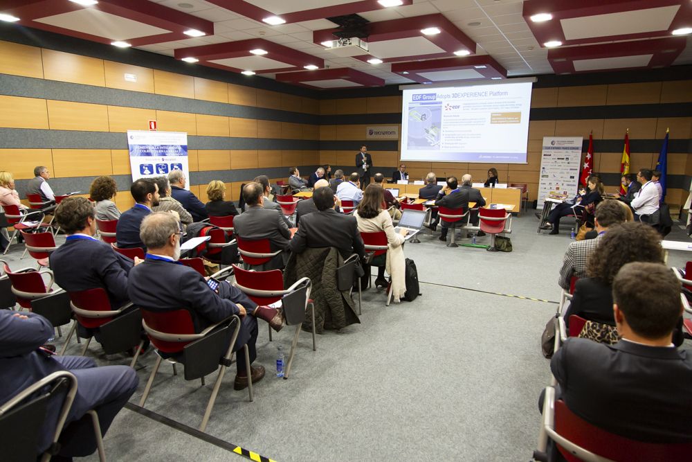 La jornada la cerró Nicolas Loupy como Director de Dassault Systemes para España y Portugal, con la ponencia "Plataforma colaborativa: transformación digital de la ingeniería nuclear de EDF y de su ecosistema". Dassault es el sexto grupo más importante a nivel mundial fabricante de software, con 40 años de vida y sede en París. La evolución de la tecnología de la empresa ha sido constante. En su fase inicial coincidió con la creación del diseño 3D y la necesidad de transmitir información fiable entre dos emplazamientos; posteriormente llegó el 3D PLM (Product Lifecycle Management) y la última etapa la protagonizan las 3DExperience, Business Experience: simulación en 3D y creación de modelos digitales.
