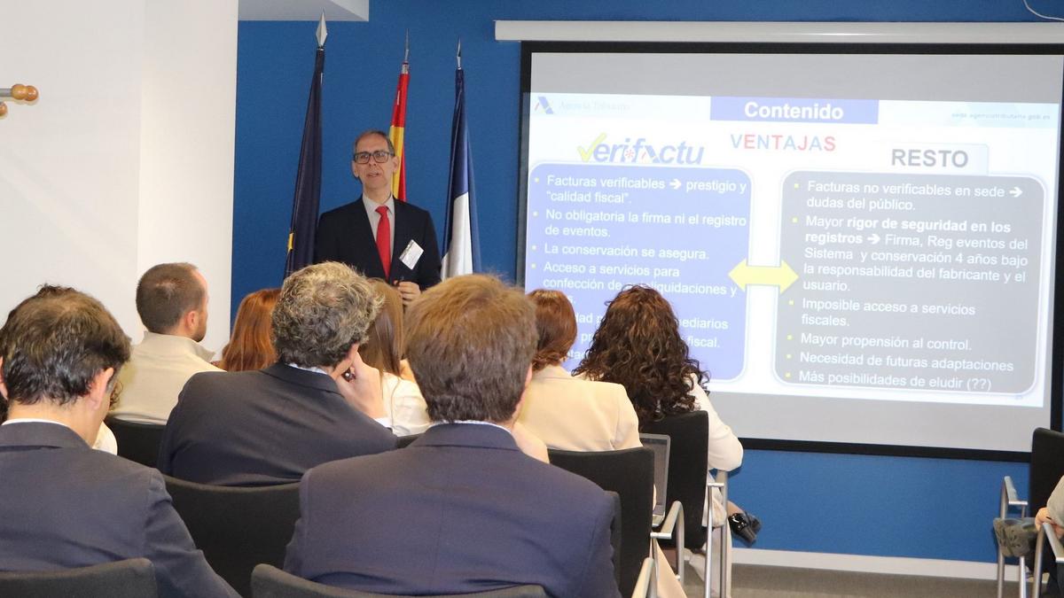 - Javier Hurtado, inspector de Hacienda del Estado y jefe adjunto del Área de Fraude, ha abordado las ventajas del sistema Veri*factu, dirigido a impulsar la facturación segura y evitar el fraude fiscal en las pymes.
