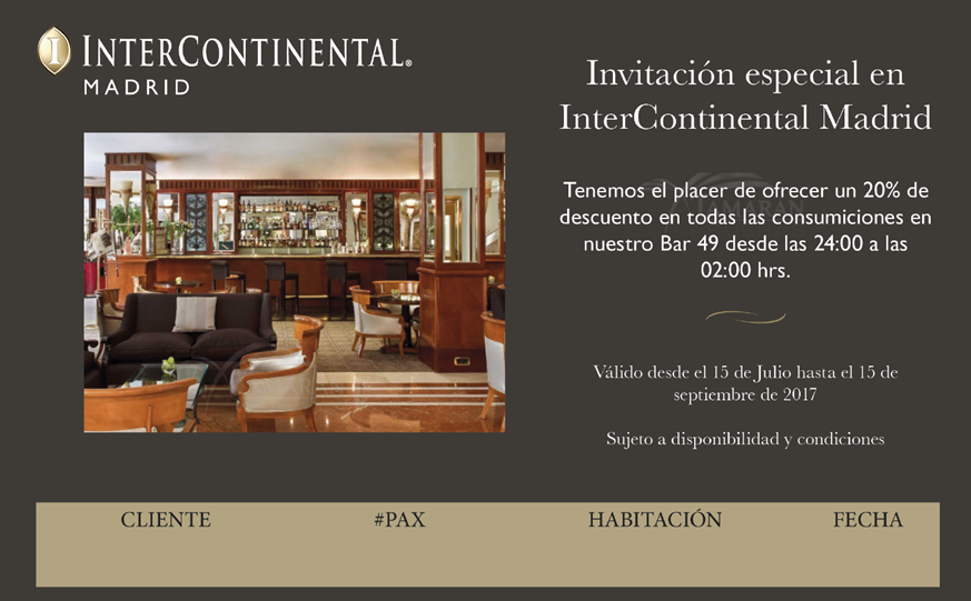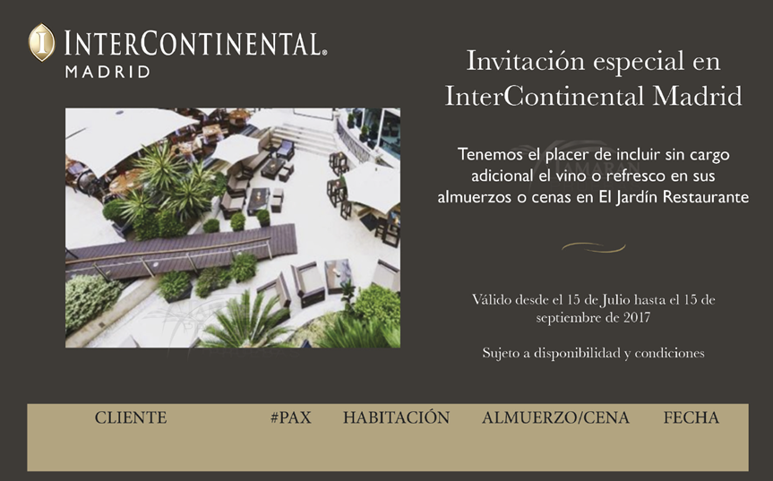 HOTEL INTERCONTINENTAL MADRID - OFERTA ESPECIAL PARA LOS SOCIOS