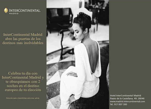 Además descubre el nuevo concepto Wedding Brunch y la posibilidad de obsequiar a los Novios que celebren su Boda en InterContinental Madrid con dos noches en el Destino Europeo, InterContinental de su elección.