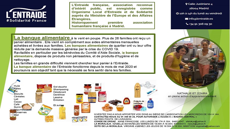 La banque alimentaire à le vent en poupe. Plus de 26 familles ont reçu un panier alimentaire . Elle vient en complément aux aides alimentaires mensuelles achetées et livrées aux familles. Les banques alimentaires de quartier ont vu leur offre réduite par la demande massive générée par la crise du COVID 19.