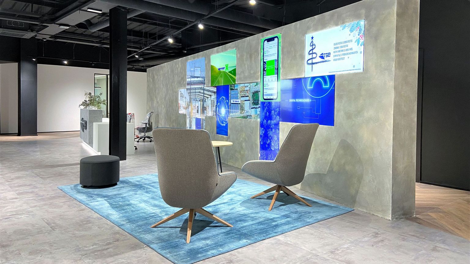KENEON, por su parte, ofrece soluciones audiovisuales y de cartelería digital, como kioscos, videowalls y pantallas LED de alta calidad, tanto para interiores como exteriores. STI ha desarrollado productos exclusivos, como pantallas transparentes y sistemas de transferencia inalámbrica.