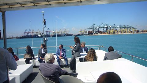 A su llegada al puerto, fueron recibidos por Joris Claeys, de Port Expertise, Mar Chao, Directora Comercial de la Autoridad Portuaria y Francesca Antonelli, jefa de marketing, quienes antes de la vista en barco del puerto, les presentaron la propuesta de valor de Valenciaport, y la futura terminal de contenedores, el proyecto para las nuevas instalaciones para pasajeros, el acceso norte y las inversiones para la potenciación del tráfico ferroviario.