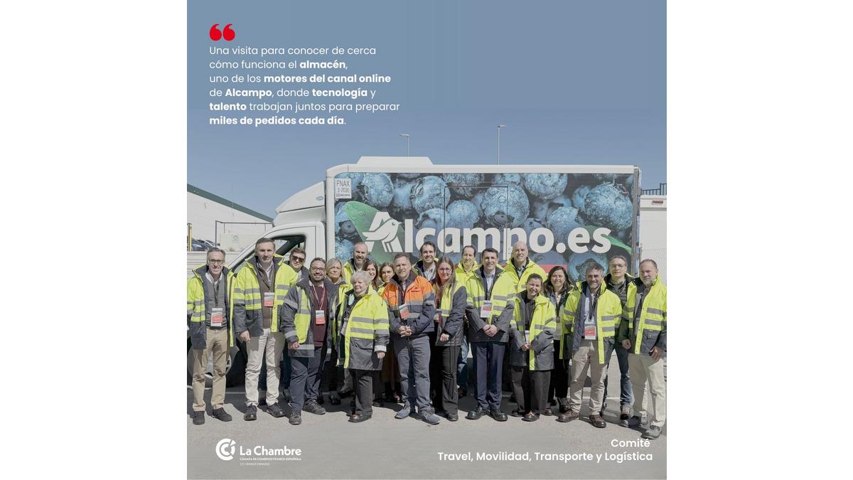 La Cámara agradece especialmente la acogida y las explicaciones compartidas por José Ramón Barca, director de Supply Chain; Enrique Cabeza, director de Plataforma CFC + Supply Chain E-Commerce; Arancha Deblas, responsable de Transporte; Eugenio Ablanque Sánchez, responsable de Planificación y Evolución del Centro Robotizado (CFC); y Carlos Delgado Polaina, director del Hipermercado de Alcampo, quienes abrieron las puertas del centro y compartieron su visión sobre el futuro de la logística en el retail.