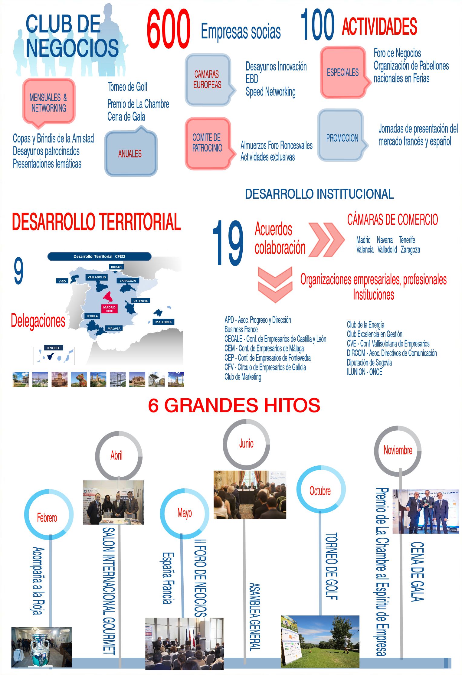 Todas estas acciones han sido posibles gracias al compromiso de los delegados, a la participación y patrocinio de los socios, que no dudan en servir de eco a nuestras actividades, al apoyo que se brinda desde los distintos departamentos de la sede de nuestra Cámara en Madrid.