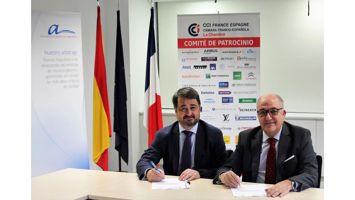 La Asociación Europea de Arbitraje, institución arbitral de referencia en nuestro país, y la Cámara Franco-Española, que desde 1894 acompaña a las empresas francesas y españolas en su implantación en ambos mercados e impulsa las relaciones comerciales entre los dos países, acaban de firmar un Acuerdo Marco histórico con el objetivo de potenciar el escenario legal de resolución de posibles conflictos de la forma más rápida y eficaz entre las empresas de los dos países.