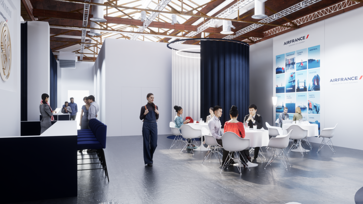 El restaurante de Air France abrirá especialmente sus puertas para la ocasión. Con capacidad para 80 personas, ofrecerá una experiencia gastronómica original, "como en un avión". En este restaurante efímero se ofrecerán las mismas delicias culinarias que se sirven habitualmente y en exclusiva a bordo de la cabina Business de largo radio de Air France.