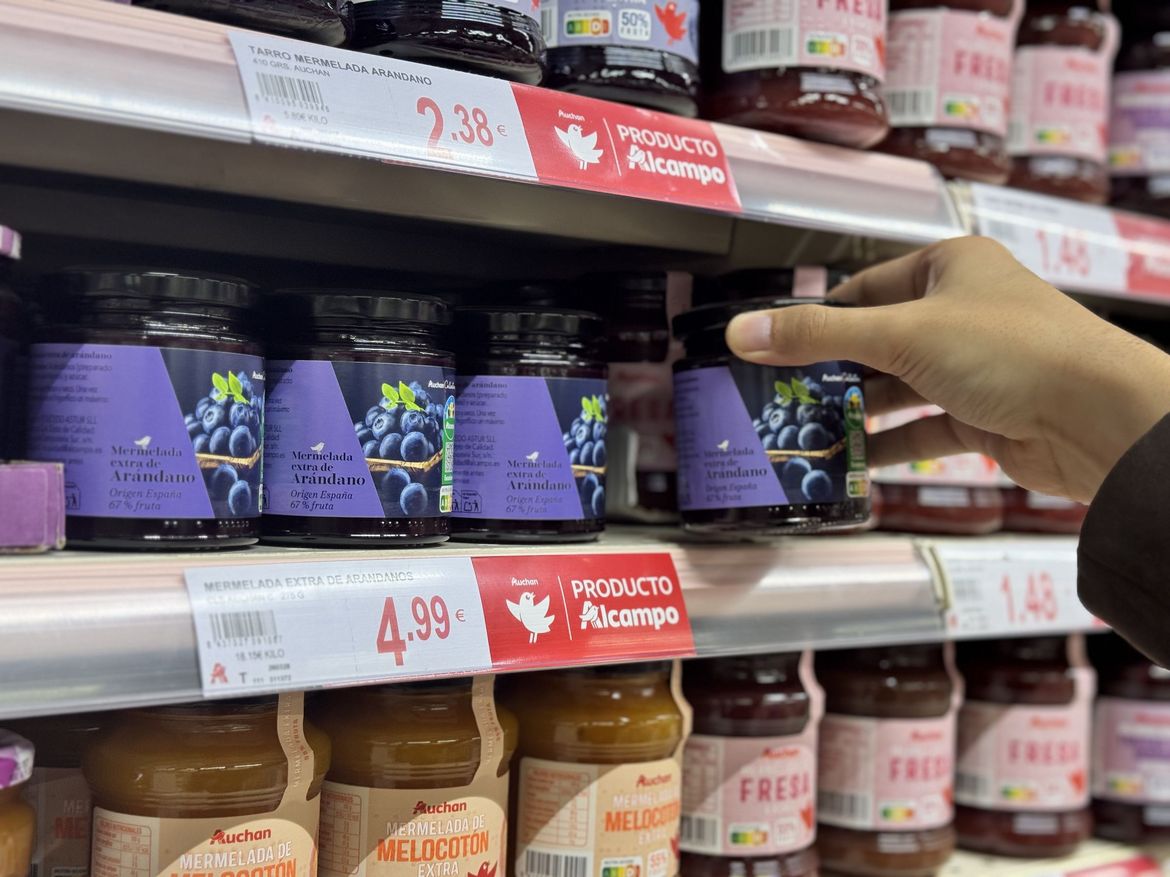 Por otro, la mermelada extra de arándano con un alto contenido en fruta, comercializada bajo su gama gourmet, Auchan Collection y también bajo el sello Cultivamos lo Bueno, se presenta en un tarro de vidrio de 275