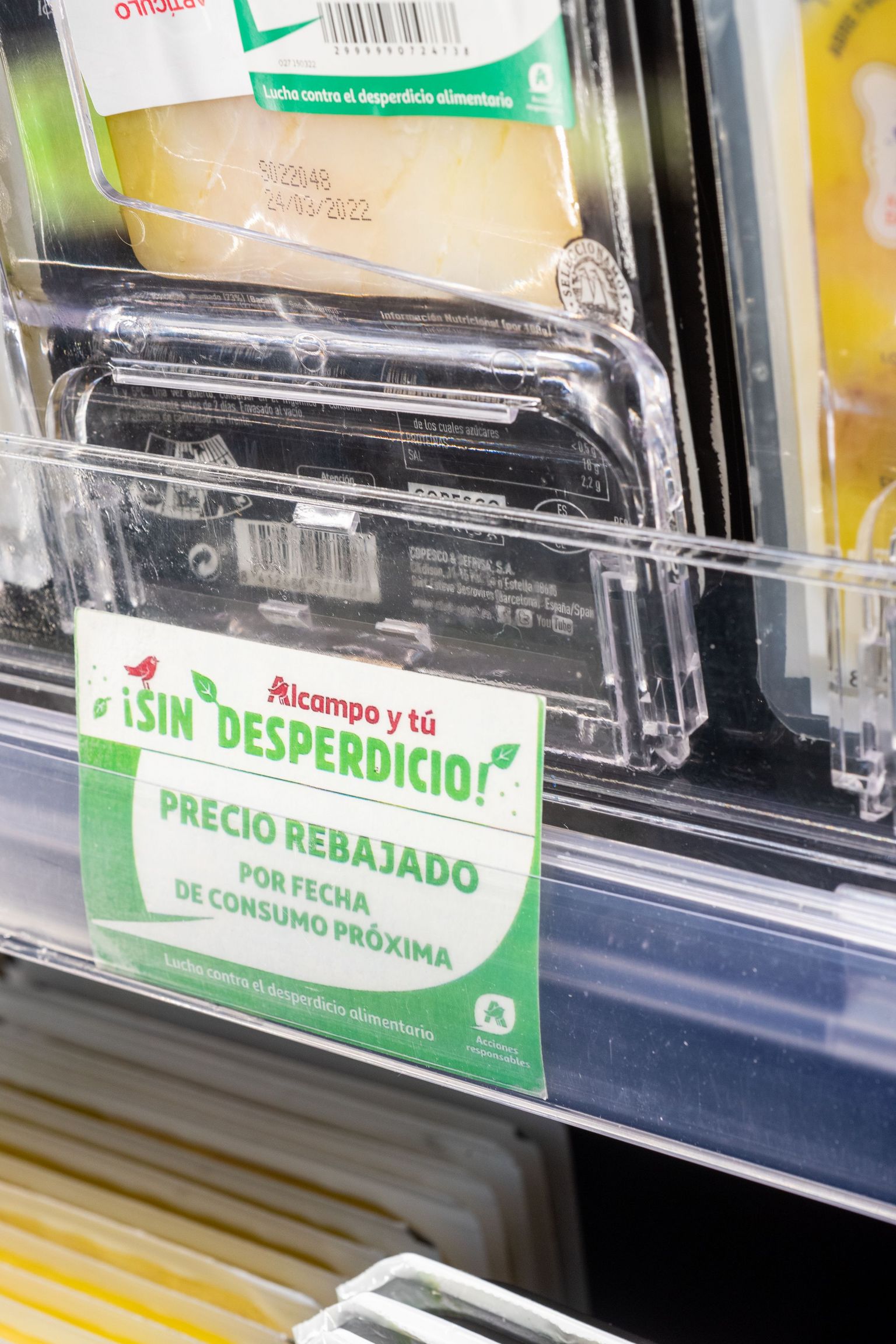 Alcampo además reduce en sus lineales el precio de los productos con caducidad próxima. Iniciado en abril de 2021, este proyecto se puso en marcha introduciendo un sistema de reducción del PVP en productos que se acercan al final de su vida útil. Se trata de alimentos, en su mayoría perecederos, cuya fecha de caducidad está cercana pero que están en perfecto estado para ser consumidos, aplicando descuentos de entre un 10% y un 50%. Con esta medida desde su puesta en marcha en 2021, se han evitado que 5 millones de artículos se desperdicien.
