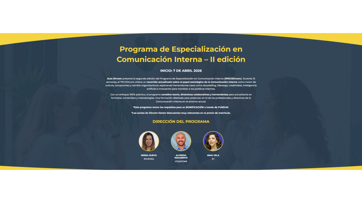 Inscríbete aquí: https://aula.dircom.org/formacion/programa-especializacion-en-comunicacion-interna-ii-edicion/