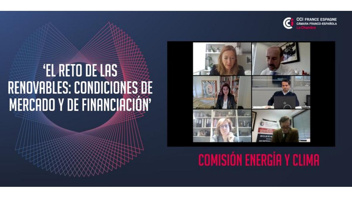 Este pasado miércoles la Cámara Franco-Española ha celebrado el webinar ‘El reto de las renovables: condiciones de mercado y de financiación’ en el que se han analizado las condiciones necesarias para alcanzar los objetivos de energías renovables planteados por el Plan Nacional de Energía y Clima 2021-2030, uno de los principales motores del Plan nacional para la recuperación, transformación y resilencia de la economía española.