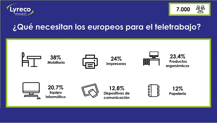 Lyreco ha llevado a cabo un estudio europeo entre pymes y grandes empresas cuya primera conclusión a destacar es la consolidación del teletrabajo como la fórmula ideal para asegurar la continuidad del negocio. De hecho, según el estudio, la media europea se sitúa en 3,6 días a la semana de teletrabajo.